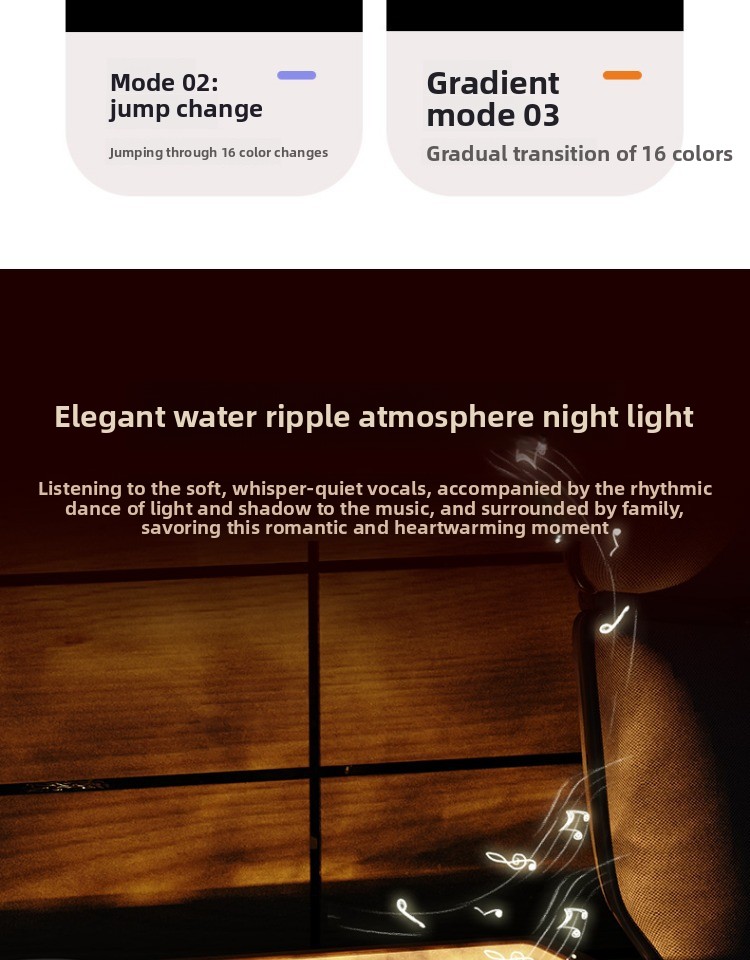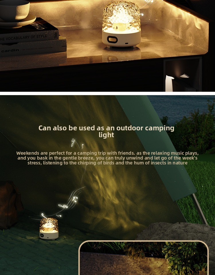 Water Ripple Effect: Circular water wave projection creates dynamic visual ambiance